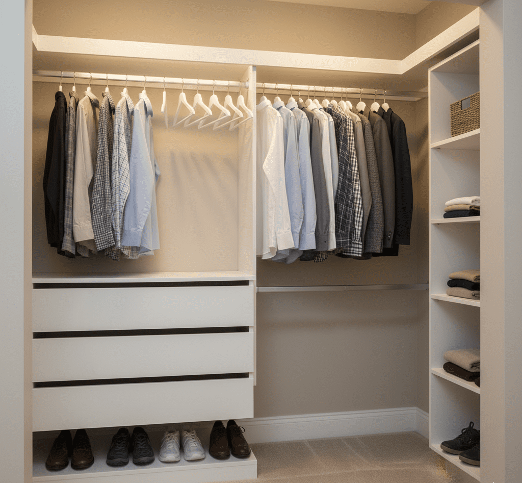 As a local company, we take pride in enhancing Buffalo homes with storage solutions that add significant property value. We specialize in large-scale master closet renovations, focusing on “his and hers” walk-ins, dressing rooms, and sophisticated reach-ins that require an architectural touch.